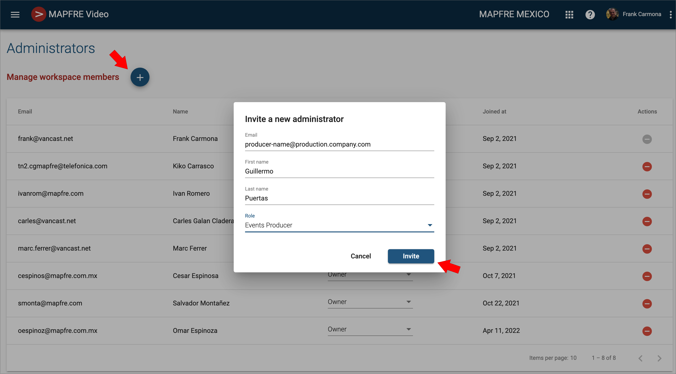 1) Invite the producer to join your VancastVideo workspace as a producer