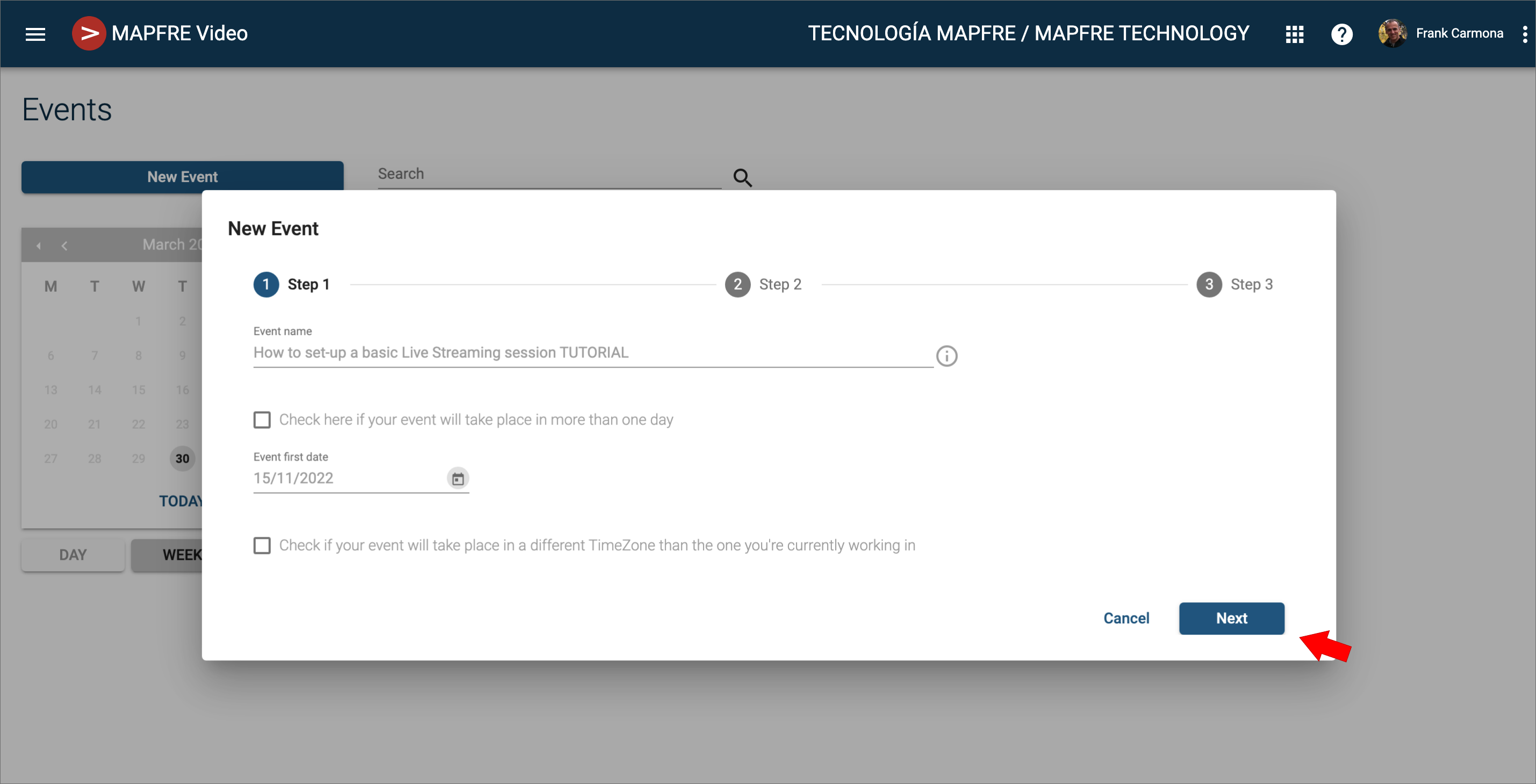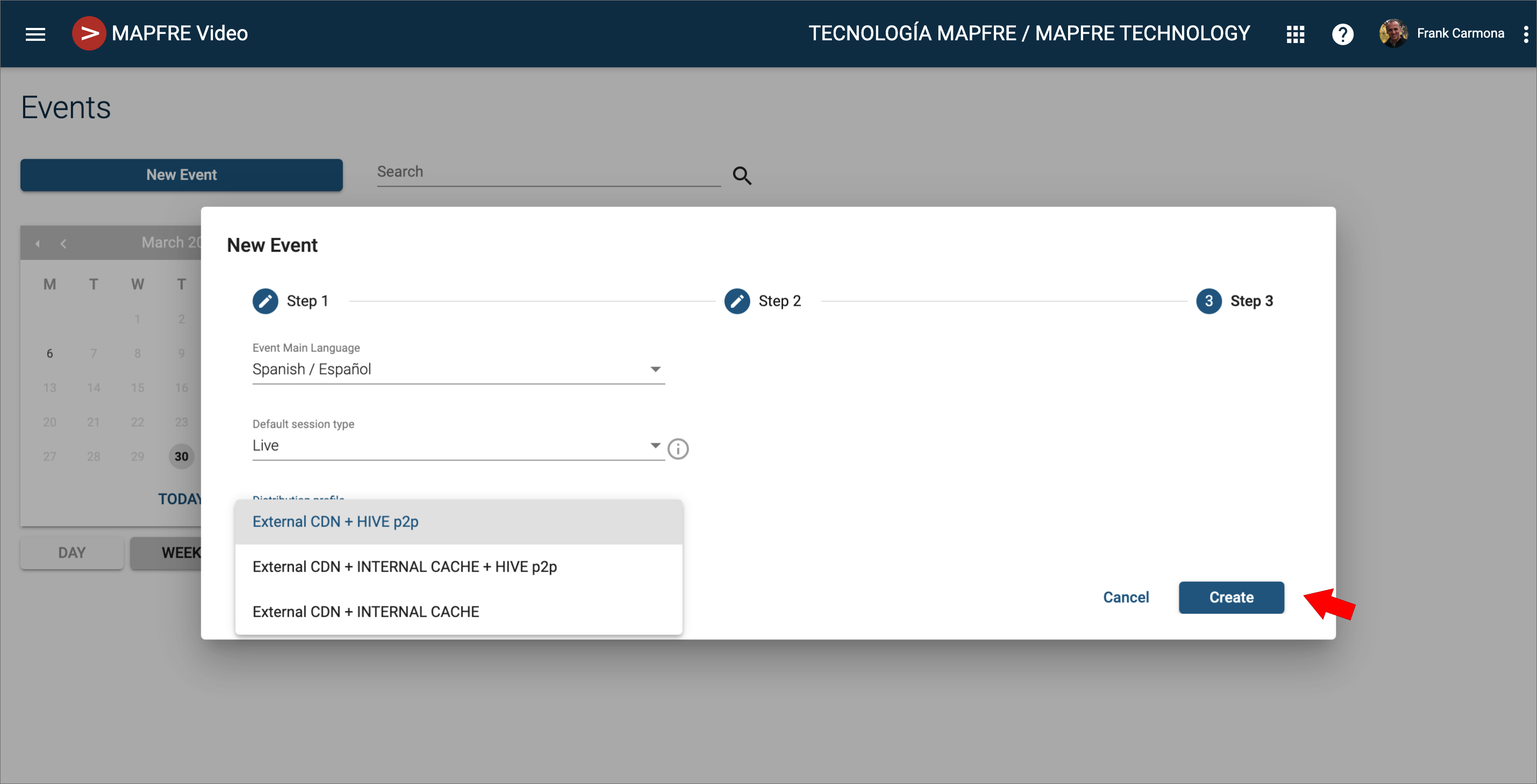1. Create a new event using the "Modern webcast - footer buttons- MAPFRE" template