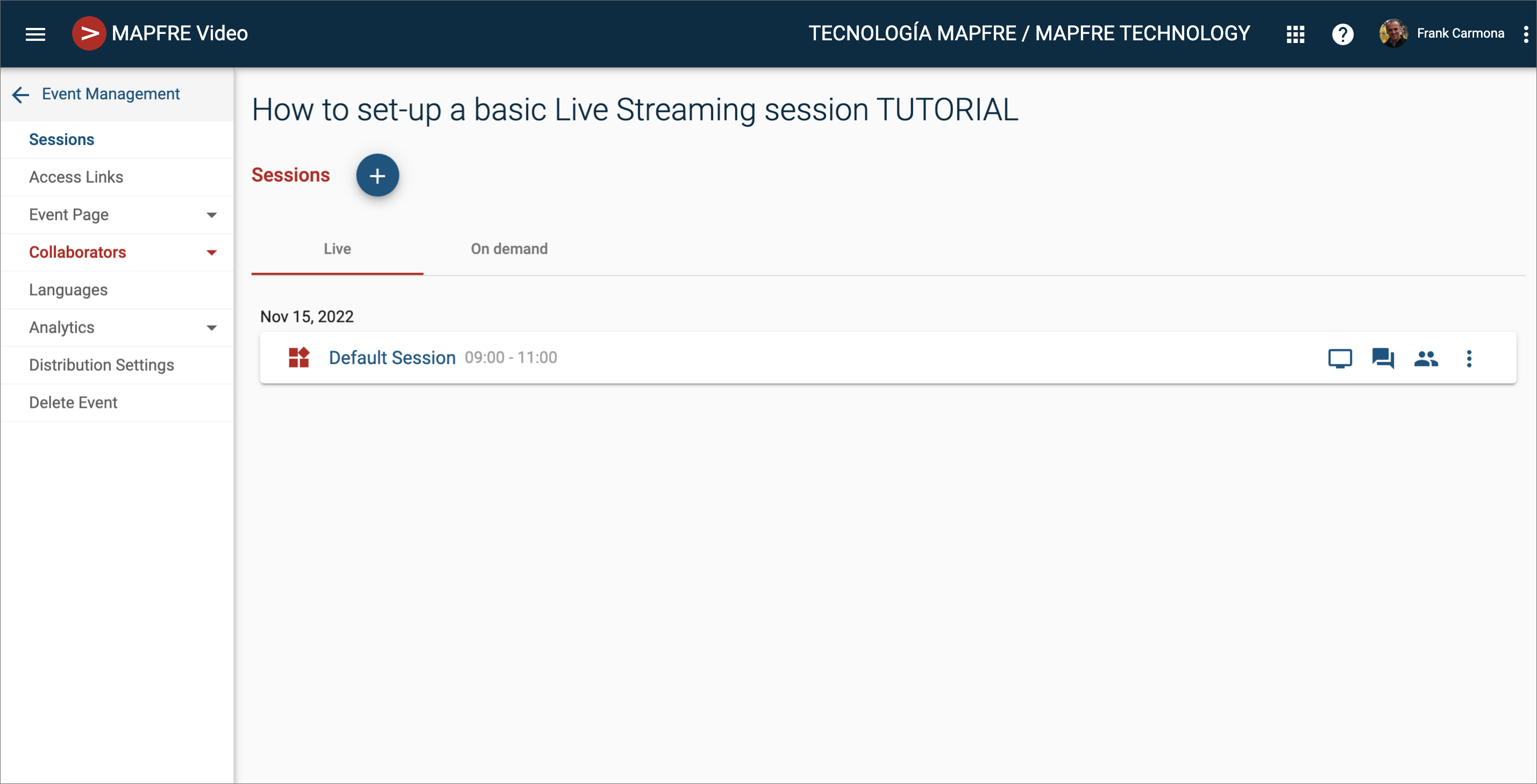 If you are not already an Administrator of one or more workspaces within the MAPFRE Video Space, please contact the CGP support team.