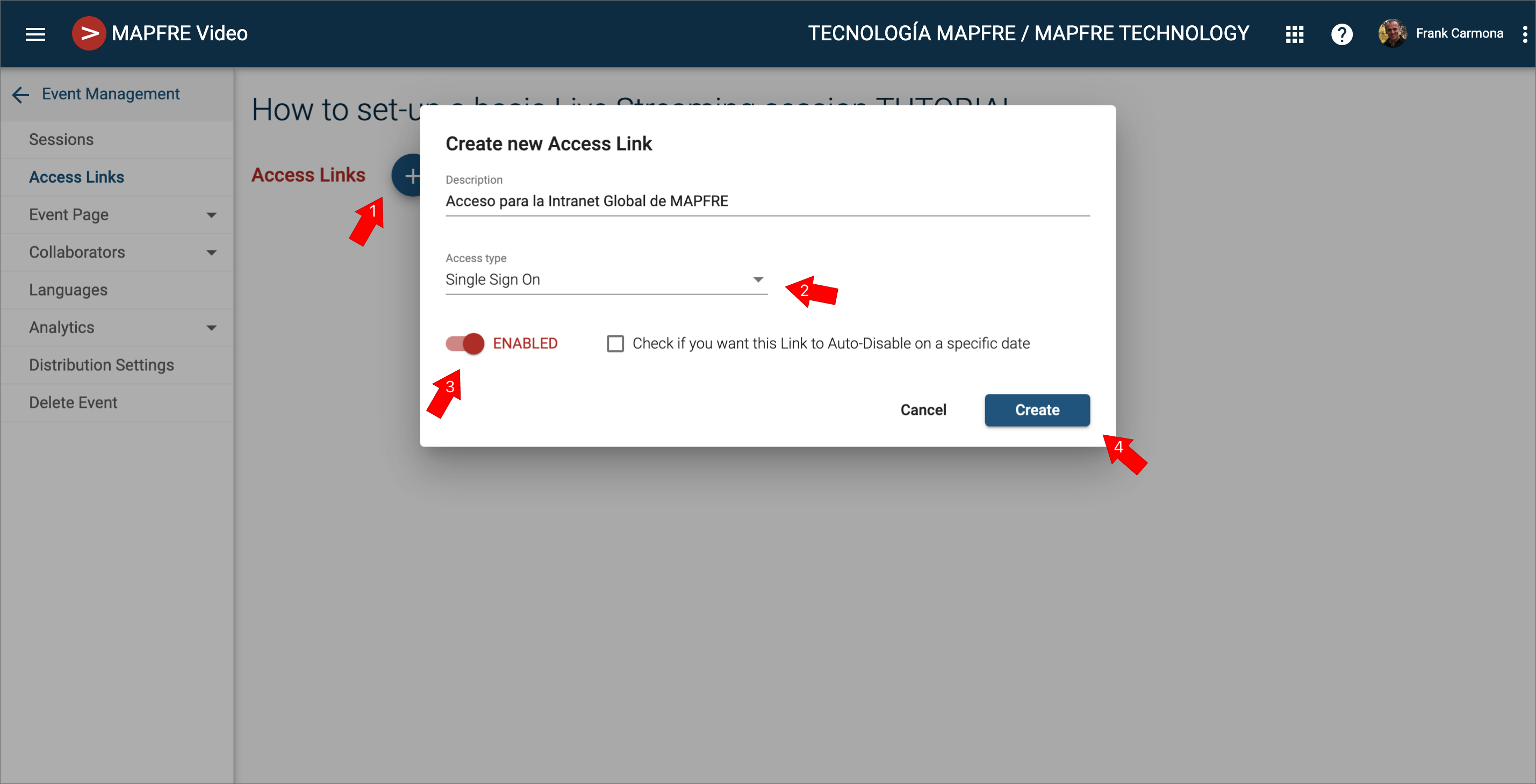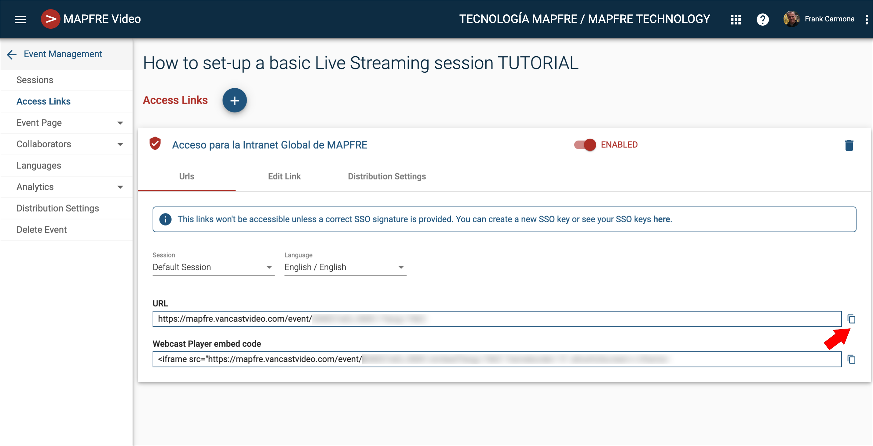 - Single-Sign-On Links: These links are intended for MAPFRE's global Intranet users, allowing them to easily access your event in a secure way.